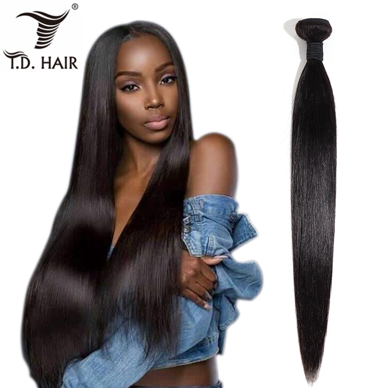 TD Hair 1PCS Straight Wave 100% Human Remy Brazilian Hair Bundles Weaves Weaving 1B# Natural Black Hair Extension 10-30 Inches